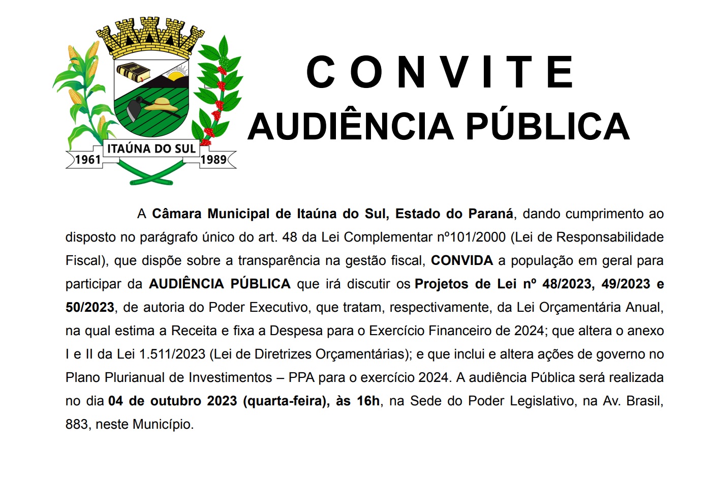 Facebook - Prefeitura Municipal de Itaúna do Sul